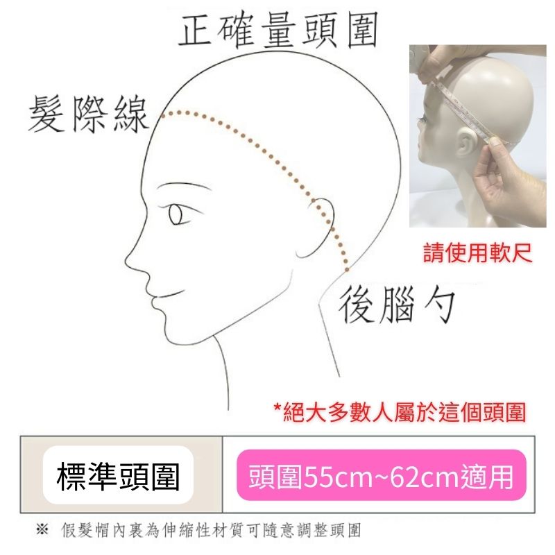 本款假髮帽頭圍可自由調整,適合多數頭型配戴;鬢角無軟鐵設計讓眼鏡族配戴更自然舒適。